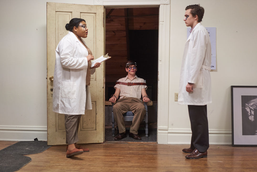For reasons dealing with cast and audience size, room capacity, and timing, in this production we are running 3 simultaneous audience tracks. Each track will give the audience a glimpse of new scenes and new contexts for repeated or overheard scenes. During pre-production, for a long time my pantry door was a mess of note cards, painter's tape, and colorful Post-Its as I tracked which scenes could happen where, in what order, and in which rooms so that all the tracks would last the same length, and our 12 actors could populate 50+ roles across different spaces and floors. This play, with so very many moving pieces, was no small feat to plan and execute and I am eternally grateful to the actors, stage mangers, assistant directors, assistant stage managers, designer and technicians who all said "YES" and created and environment of positivity, support, and determination.